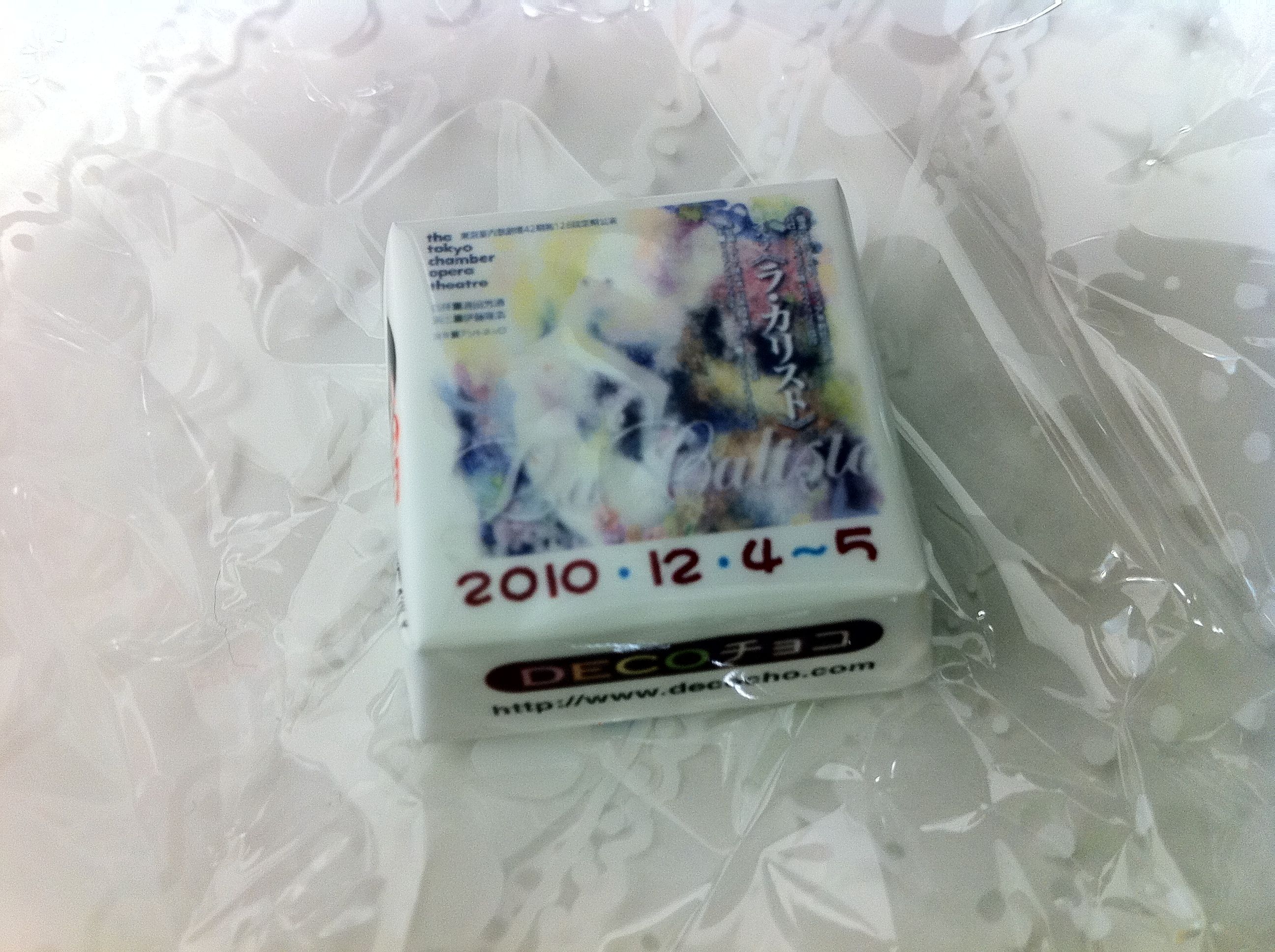 写真は一日目のカリスト役、末吉さんから差し入れして頂いた「ラ・カリスト」のチラシが印刷されたチョコ。