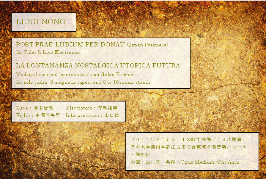 2011/4/29(金) ~ 2011/7/29(金) の期間で、全12回にわたって行われる東日本大震災被災者支援のためのチャリティ・マラソン・コンサート 「祈りから光りへ」の中のコンサートに出演します。